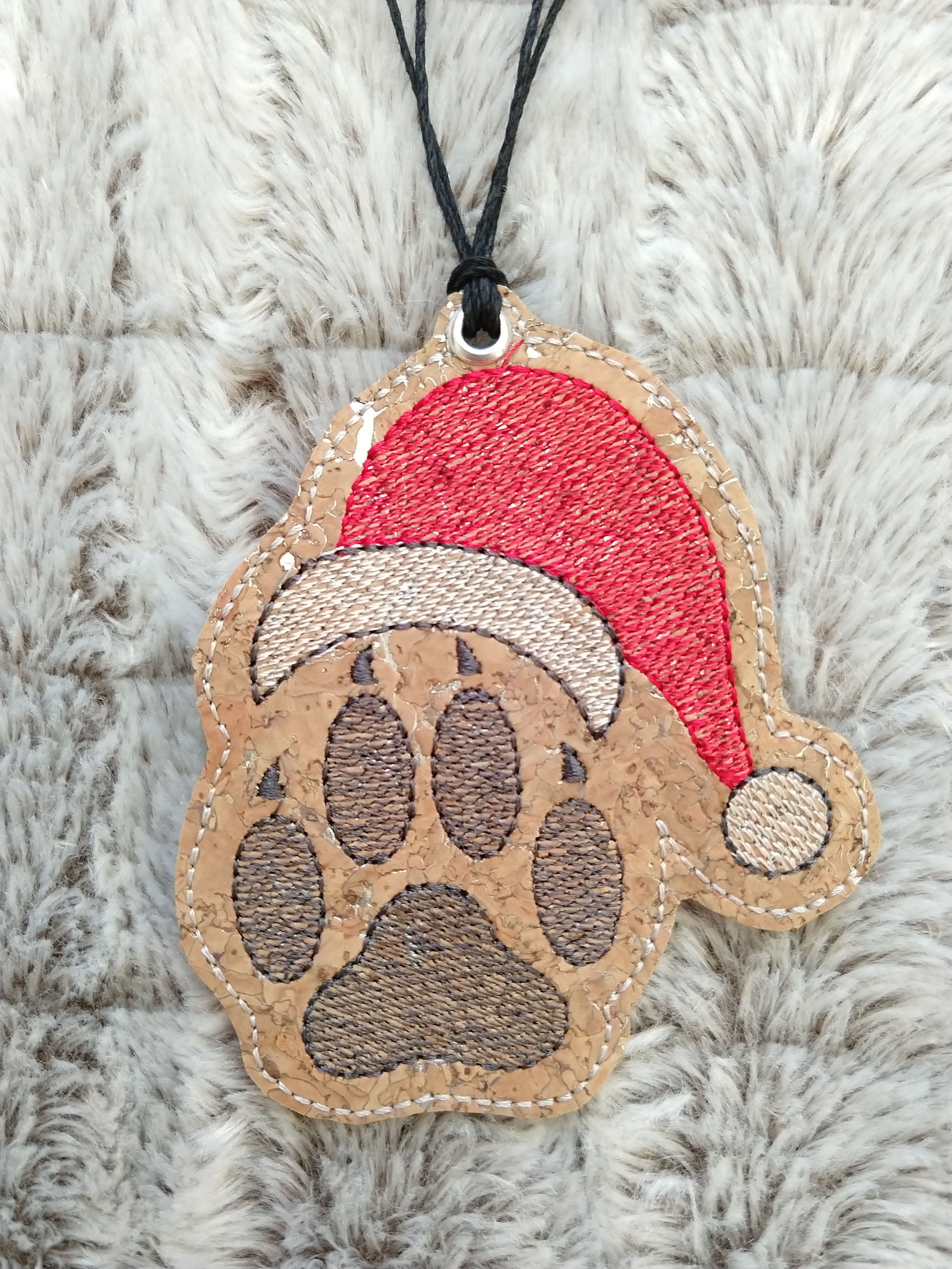 handmade machine embroidered on cork ornament. smoke free and animal free home.